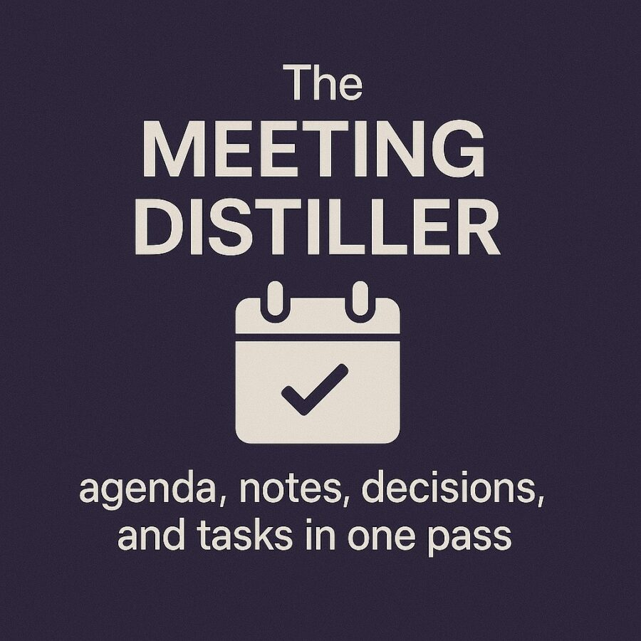 Read the full article... “The Meeting Distiller: Agenda, Notes, Decisions, and Tasks in One Pass”